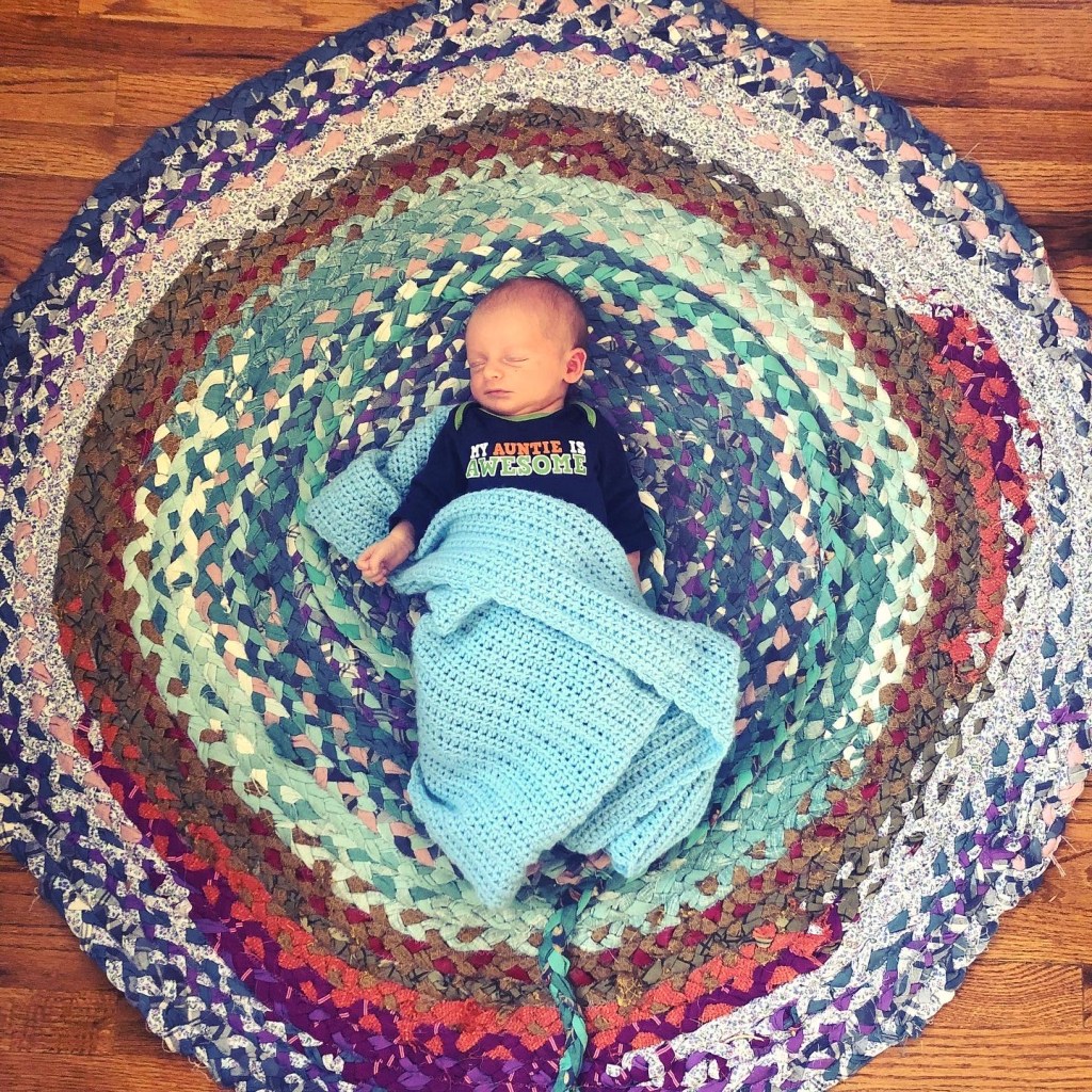 One of the first rugs I made was for this little munchkin. I broke 3 needles, and I was still tying knots instead of sewing the ends of strips of fabric together. I had to braid and unbraid, troubleshooting various problems that arose. There was a lot I didn't know then that I know now, having made over 60 of them. People often tell me my rugs are, 'too pretty to be used." They're scared to step on them. I say, using beautiful things gives them meaning they do not possess if they remain pristine, untouched, unknown. The rugs I keep with me lay upon the Earth just as frequently as my bedroom floor. I sleep on them when I camp. I lay on them when I gaze up at the Stars. Wren's rug has been peed on, pooped on, maybe barfed on. Luckily, they are machine washable. Almost 4 years later, and it still holds up. It will grow old as he does. And when it is threadbare, it's OK to let it go. Perhaps he will have a vision for a new one. You can purchase a custom rug through my Etsy, here. Wren left his rug design in my hands, but you can choose your colors, size, and any other vision you might have if you wish. Xx, J