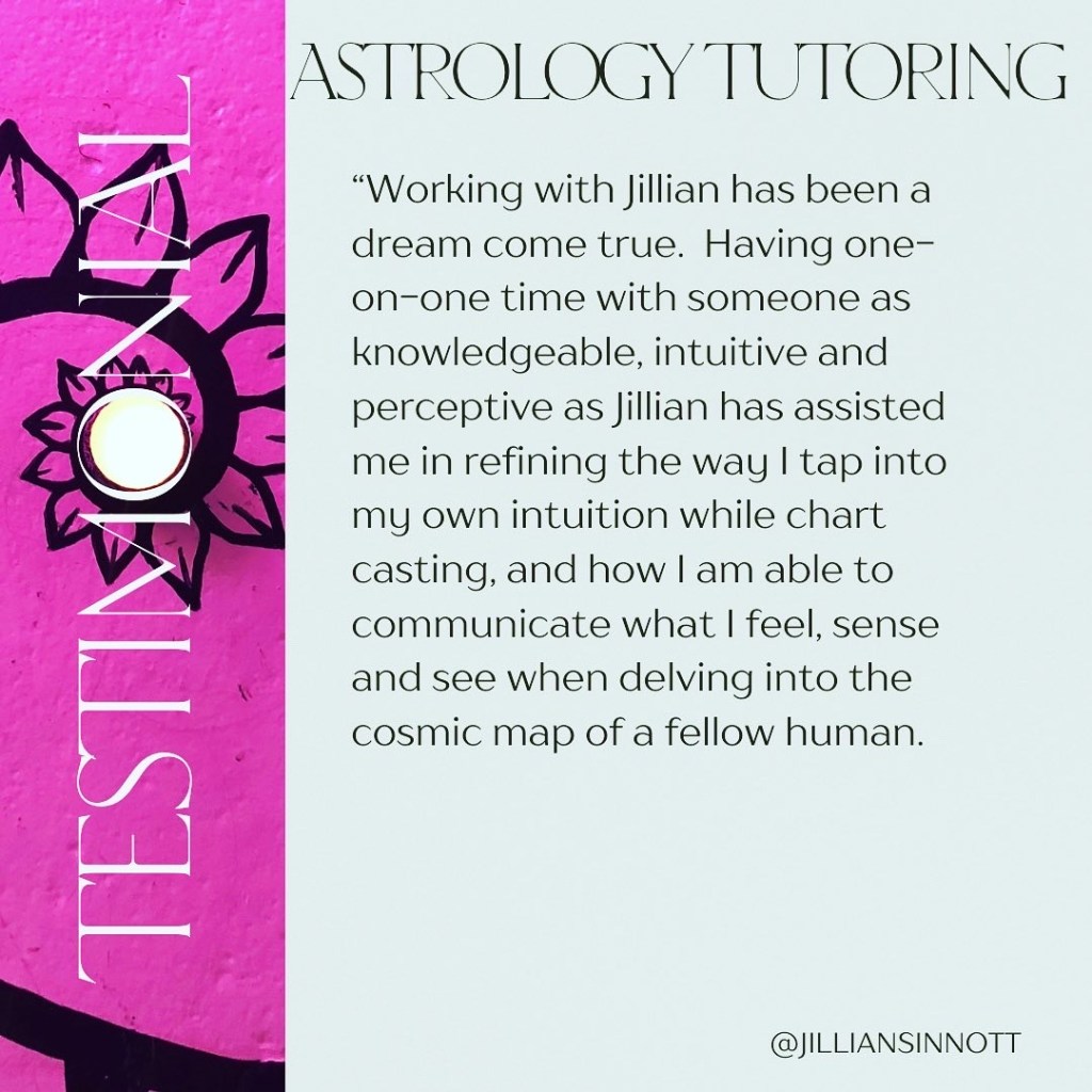 These sessions are designed to strengthen your connection to your own wisdom, and improve your proficiency in seeing and feeling existing astrological aspects, by giving you space to articulate them. I offer reflection, and strategies for seeing and sensing to improve your astrological literacy, creating ease so that your intuitive channel may open.