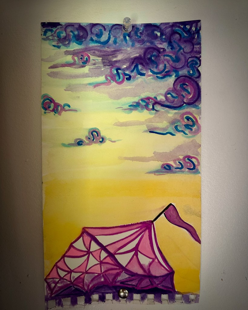 There’s something rather ominous and symbolic about a circus tent deflating- A spectacle coming to an end… As I sat around with friends last night, doodling with watercolors, this is the image that began to take shape.
